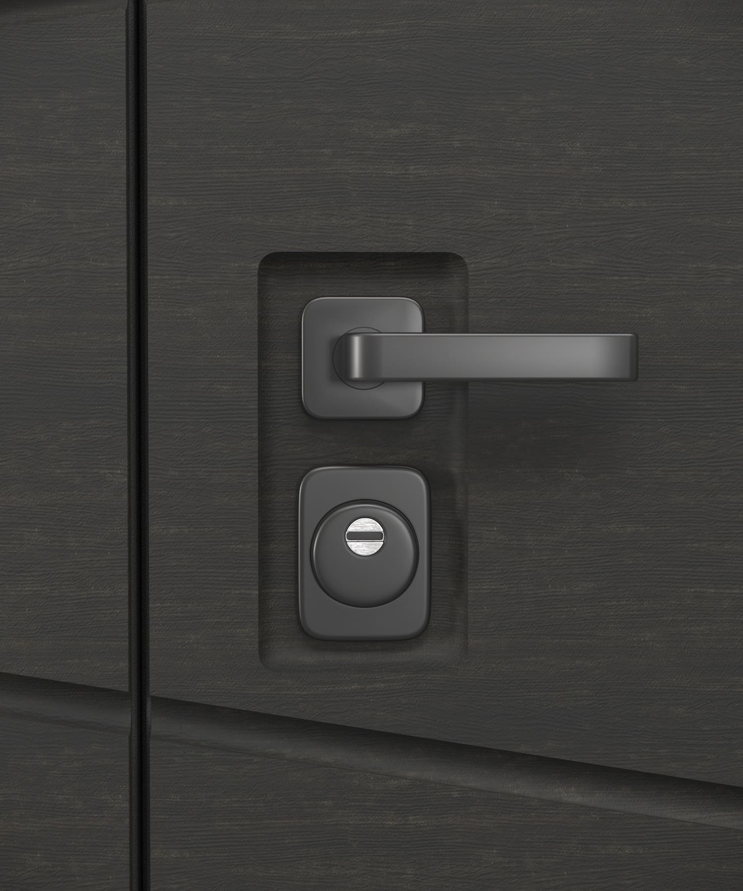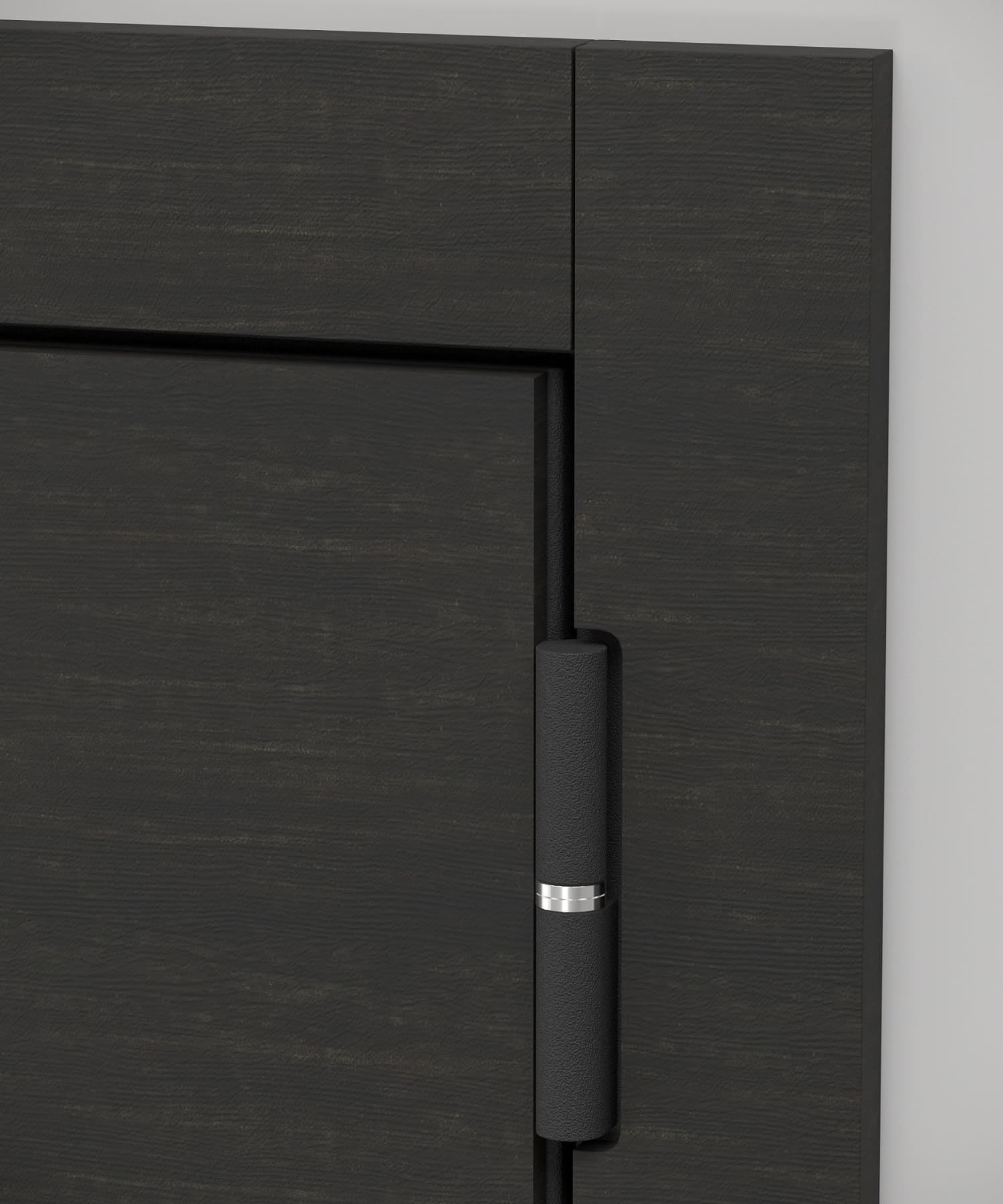 Металл «Муар черный», панель МДФ 12 мм, декор пленка ПВХ «Венге серый горизонт» |